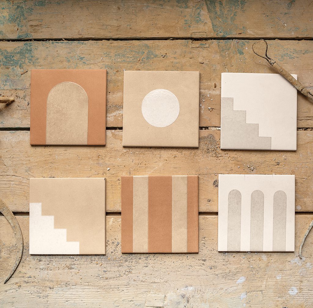 This tile collection was designed in the historic furnace Curti of Milan, inside which history and noble, artisanal traditions of the city continue to live today. This exact image of Milan, covered in clay, was the main inspiration of this collection of diamond-shaped tiles, composed of 9 red-clay-ones that represent the graphic archetypes of architecture.